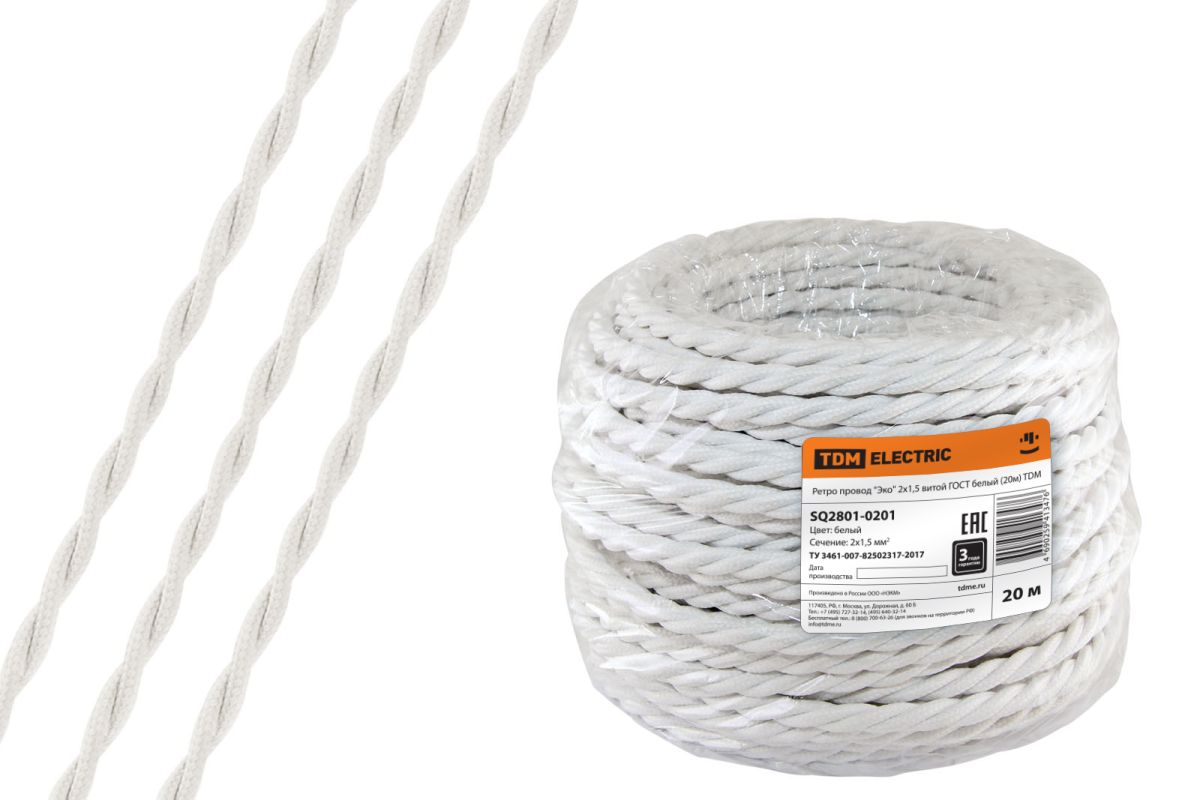 Читать все статьиРетро провод «Эко» 2х1,5 витой ГОСТ белый (20м) TDM