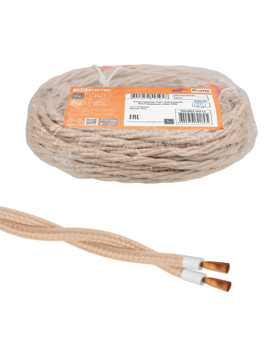 Ретро провод «Эко» 2х2,5 витой ГОСТ бежевый (10м) TDM