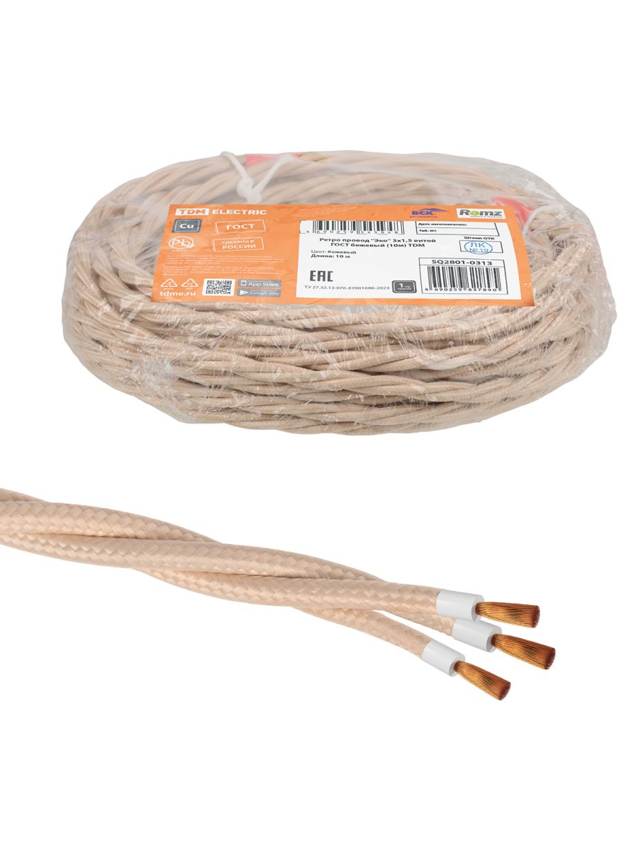 Ретро провод «Эко» 3х1,5 витой ГОСТ бежевый (10м) TDM