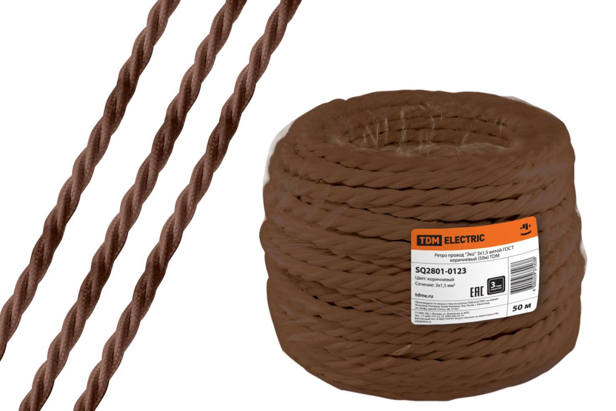 Читать все статьиРетро провод «Эко» 3х1,5 витой ГОСТ коричневый (50м) TDM