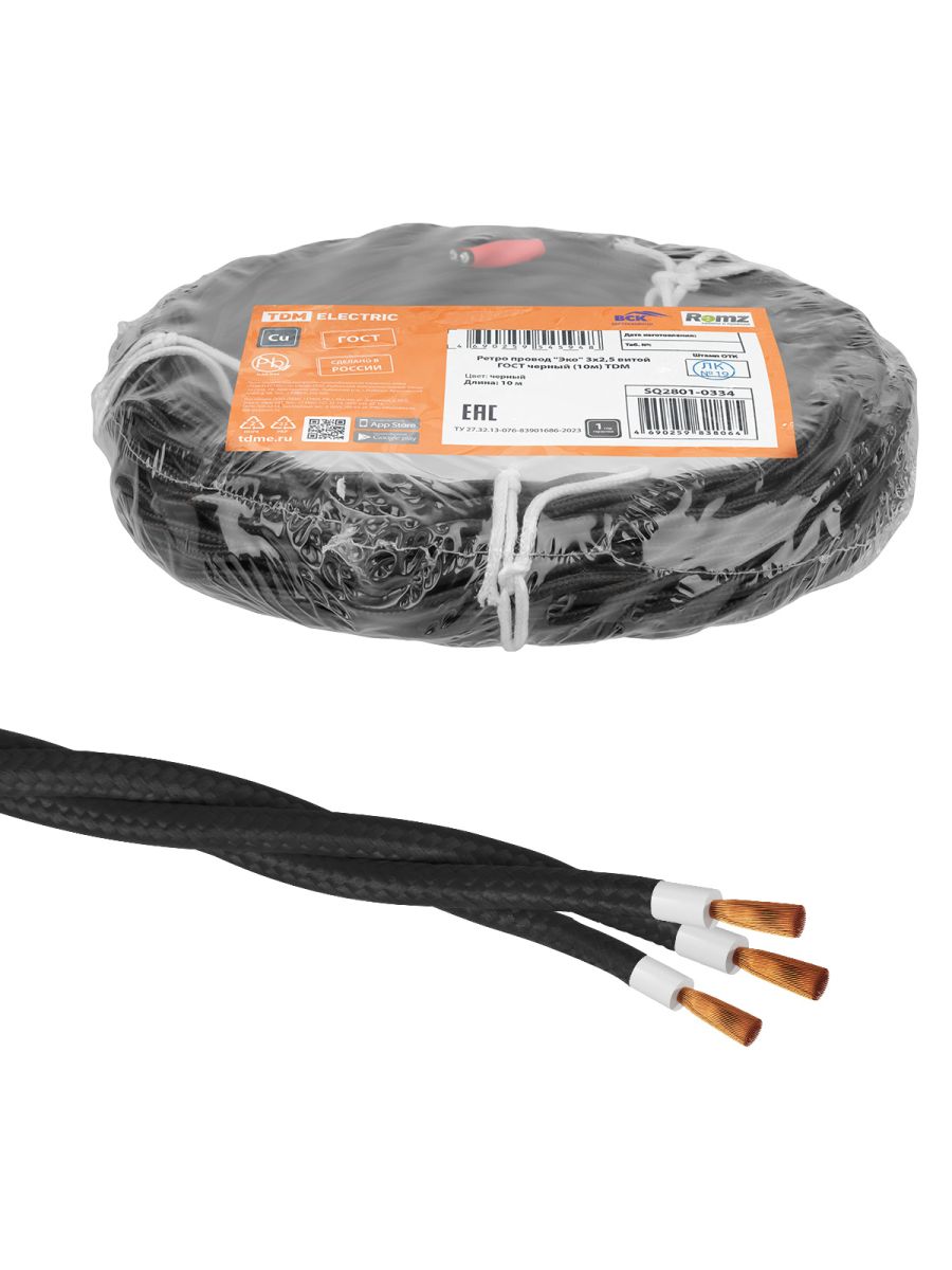 Ретро провод «Эко» 3х2,5 витой ГОСТ черный (10м) TDM