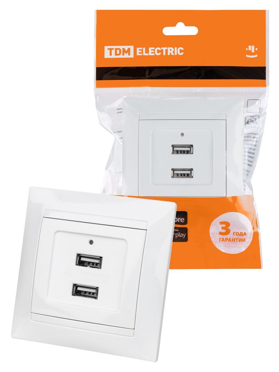 Розетка 2USB порт 2,1А 5В белая «Лама» TDM