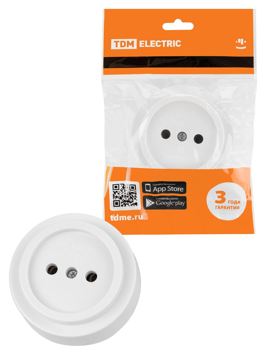 Розетка 2П открытой установки IP20 10А белая «Ретро» TDM