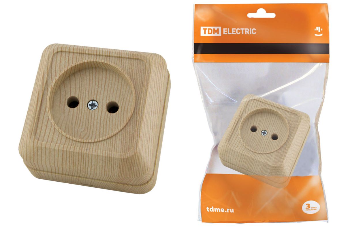 Читать все статьиРозетка 2П открытой установки IP20 10А, сосна «Ладога» TDM