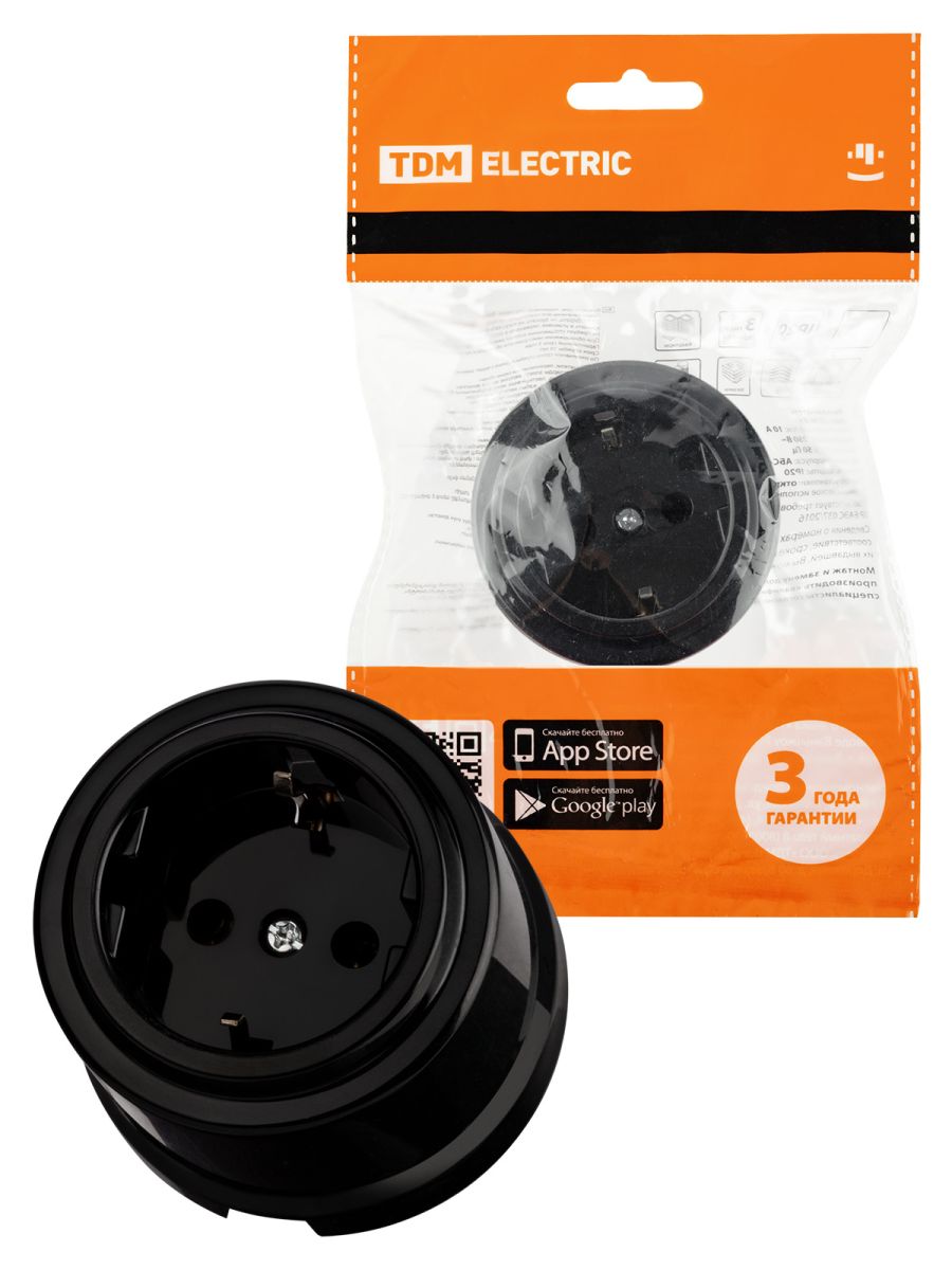 Розетка 2П+З 16А 250В черная «Виви» TDM