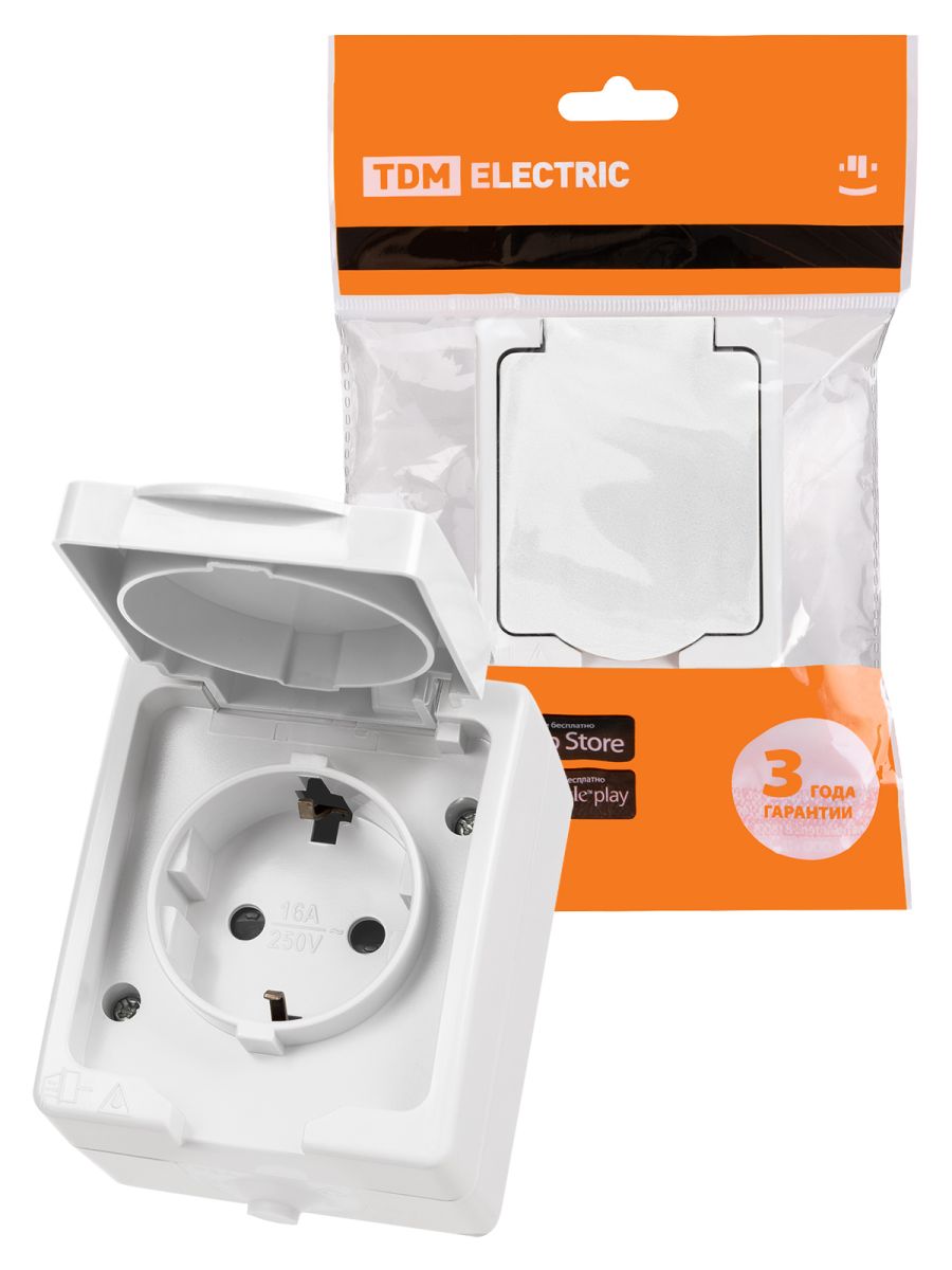 Читать все статьиРозетка 2П+З открытой установки IP54 16А белая «Вуокса» TDM