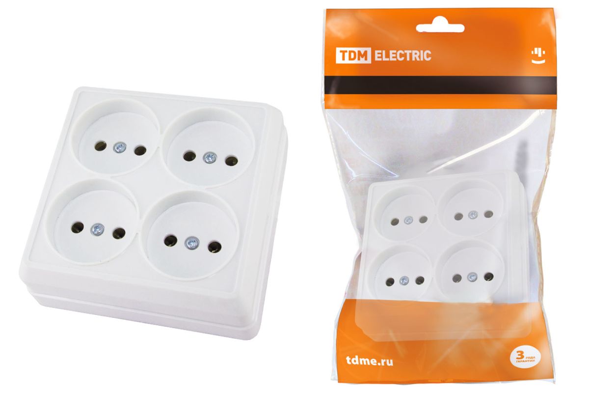 Розетка четырехместная 2П открытой установки IP20 10A белая «Ладога» TDM