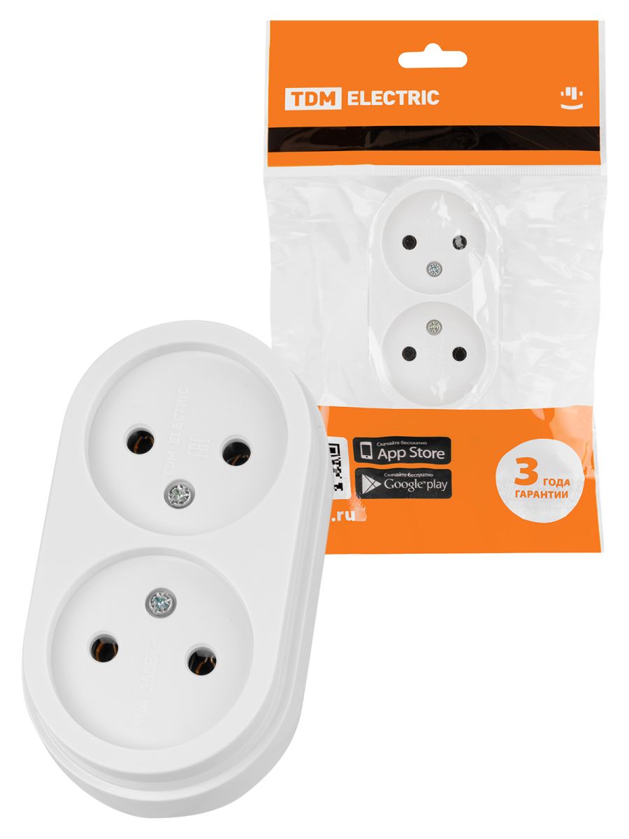 Розетка двойная 2П открытой установки IP20 10А белая «Ретро» TDM