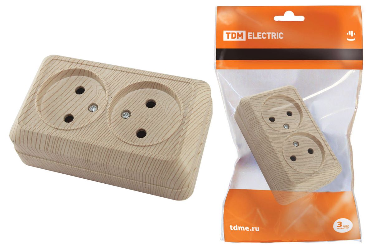 Читать все статьиРозетка двойная 2П открытой установки IP20 10А, сосна «Ладога» TDM