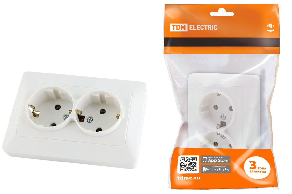 Читать все статьиРозетка двойная 2П+З 16А 250В белая «Ильмень» TDM