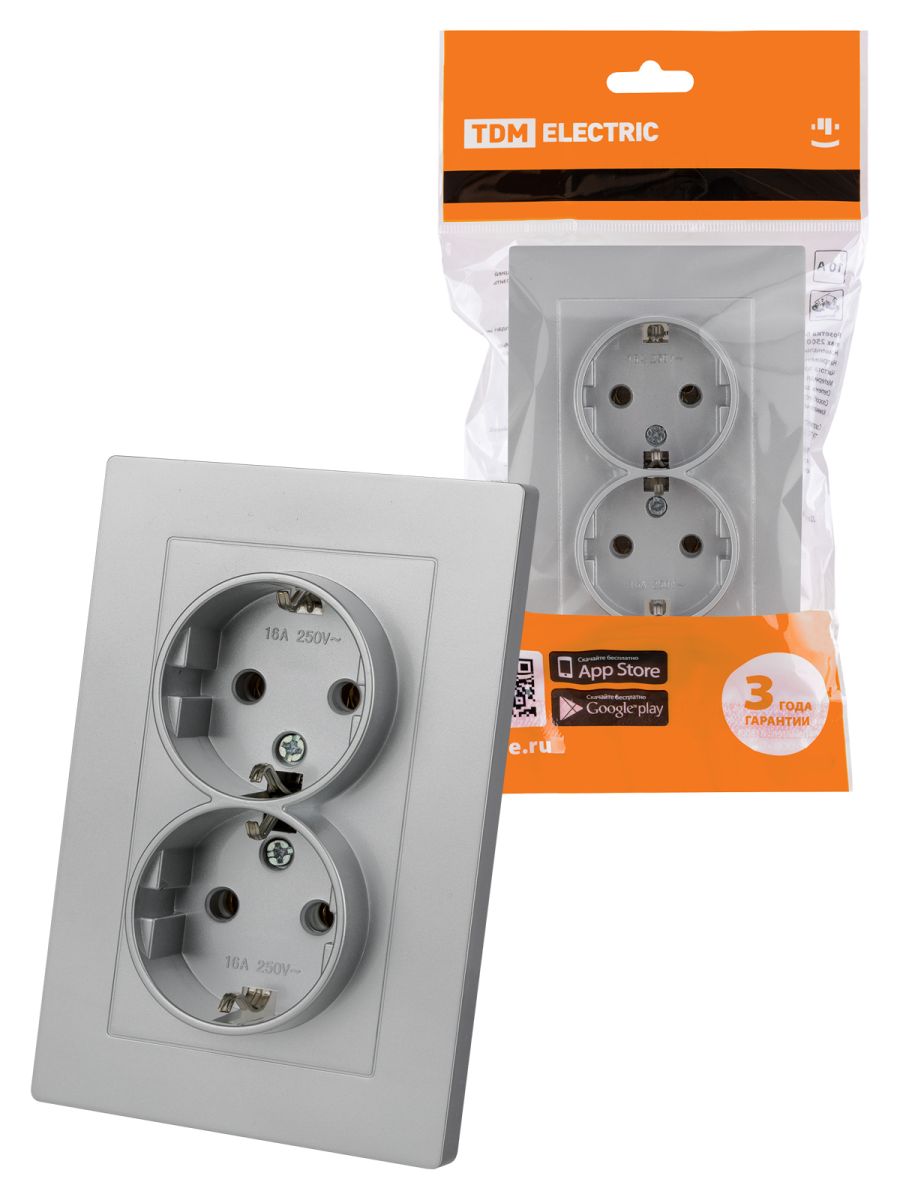 Розетка двойная 2П+З 16А 250В серебр. металлик «Сенеж» TDM