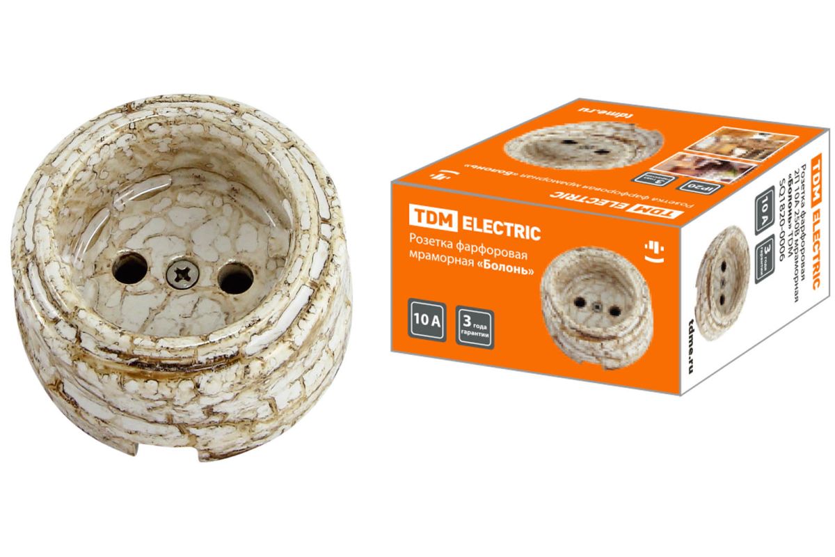 Читать все статьиРозетка фарфоровая 2П 10А 250В мраморная «Болонь» TDM