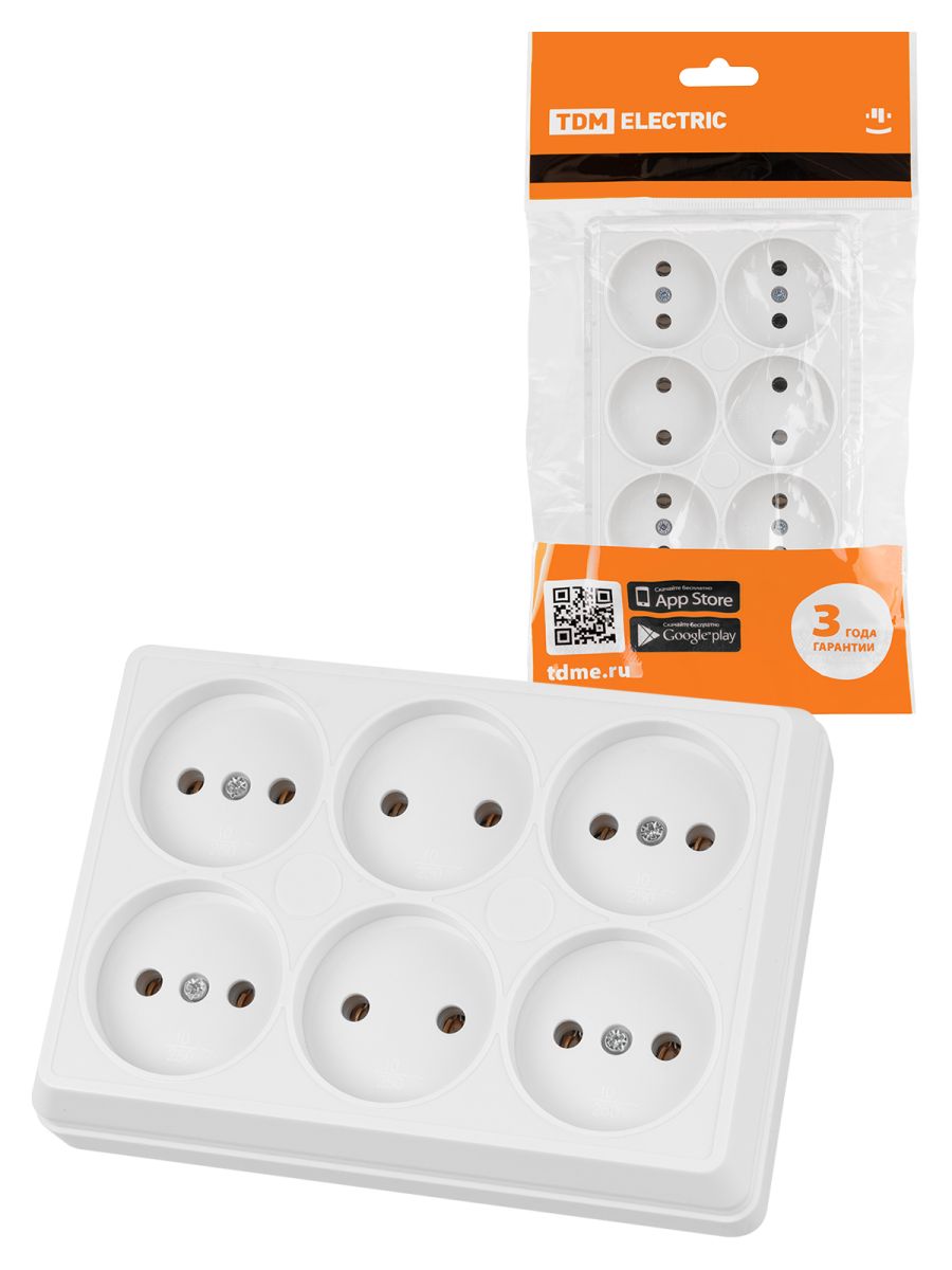 Розетка шестиместная 2П открытой установки IP20 10A белая «Ладога» TDM