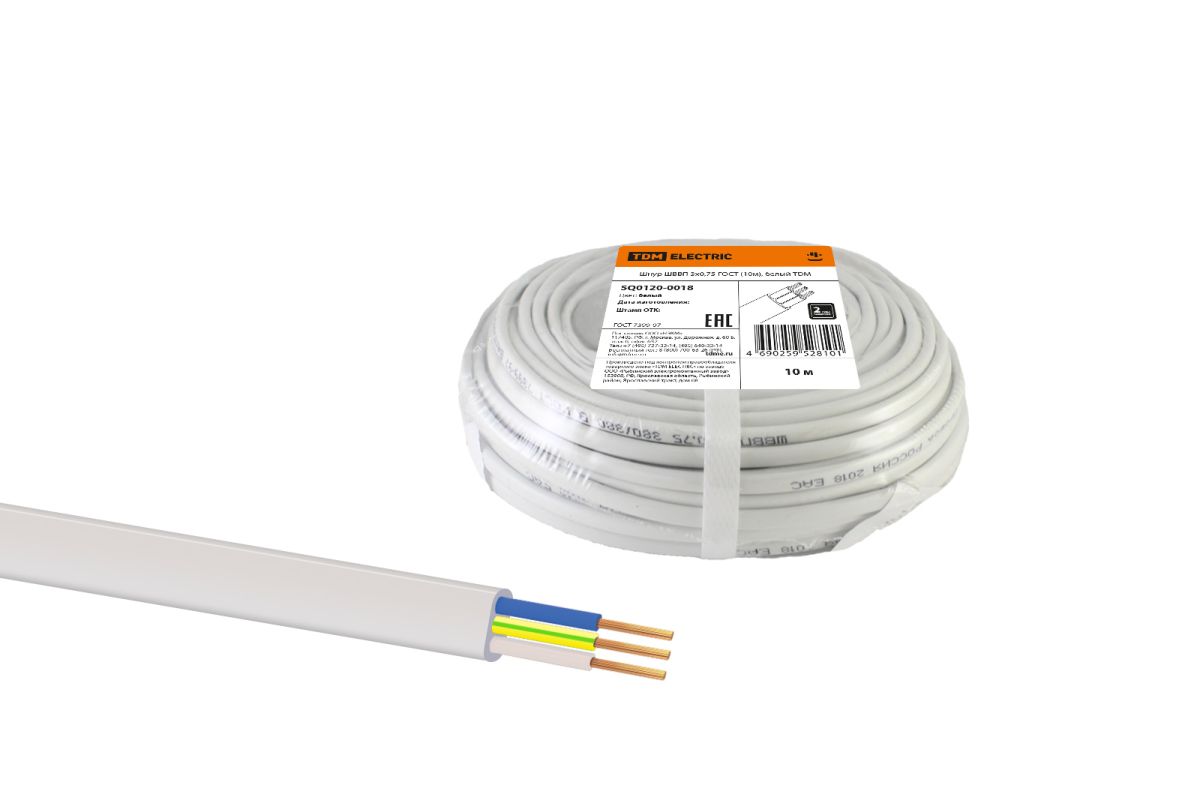 Шнур ШВВП 3х0,75 ГОСТ (10м), белый TDM