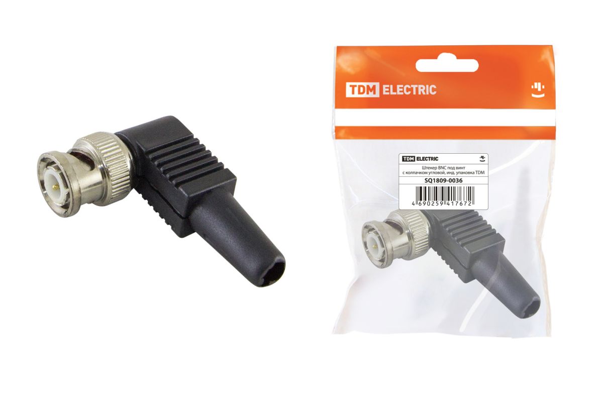 Штекер BNC под винт с колпачком угловой, инд. упаковка TDM