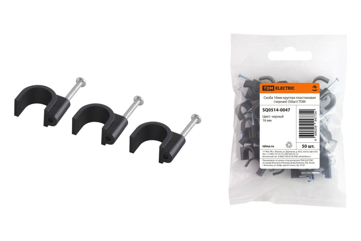 Скоба 16мм круглая пластиковая (черная) (50шт) TDM