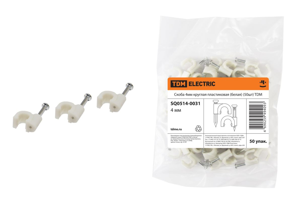 Скоба 4мм круглая пластиковая ( белая) (50шт) TDM