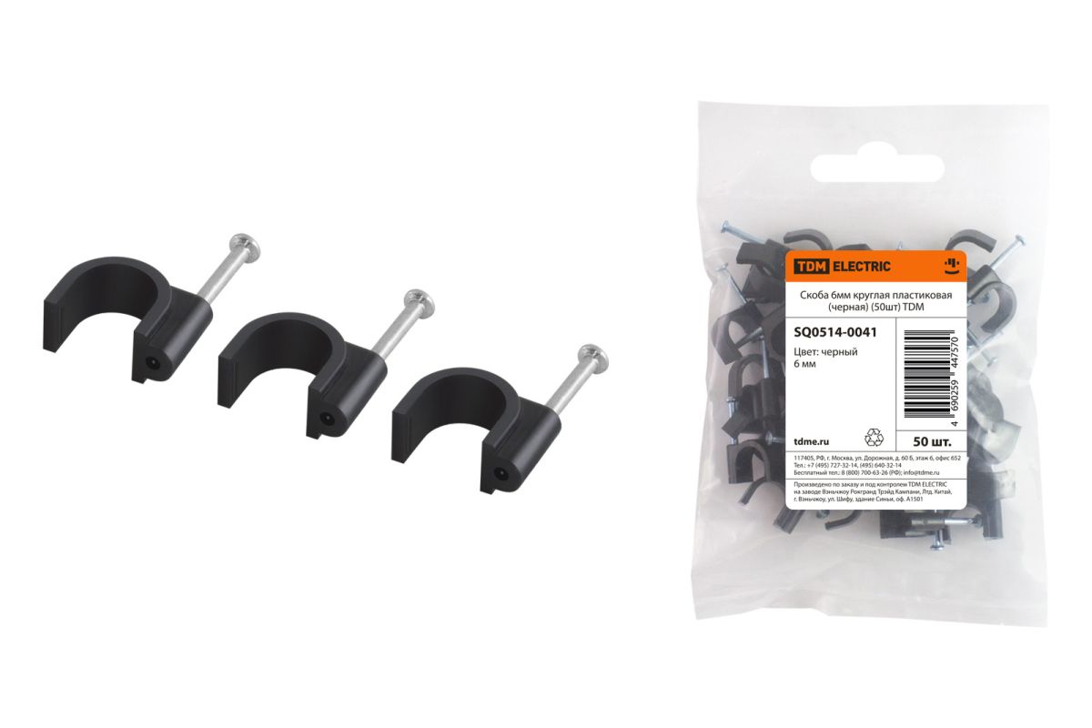 Скоба 6мм круглая пластиковая (черная) (50шт) TDM