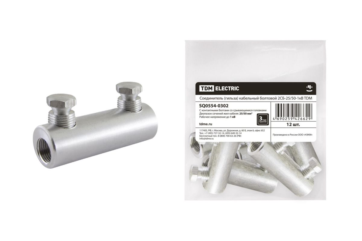 Читать все статьиСоединитель (гильза) кабельный болтовой 2СБ-25/50-1кВ TDM