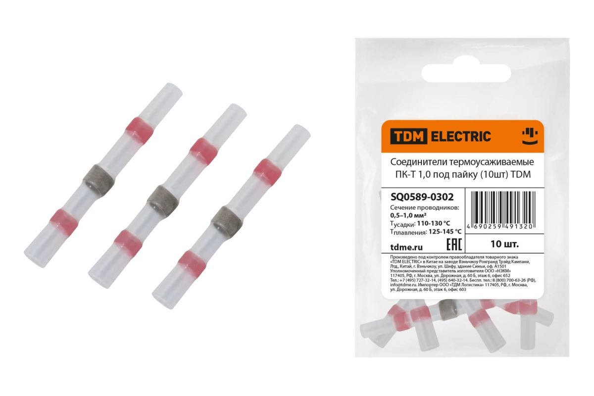 Читать все статьиСоединители термоусаживаемые ПК-Т 1,0 под пайку (10шт) TDM
