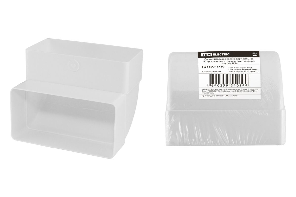 Соединительное колено вертикальное 90 гр. для прямоугольных воздуховодов, 55х110, TDM