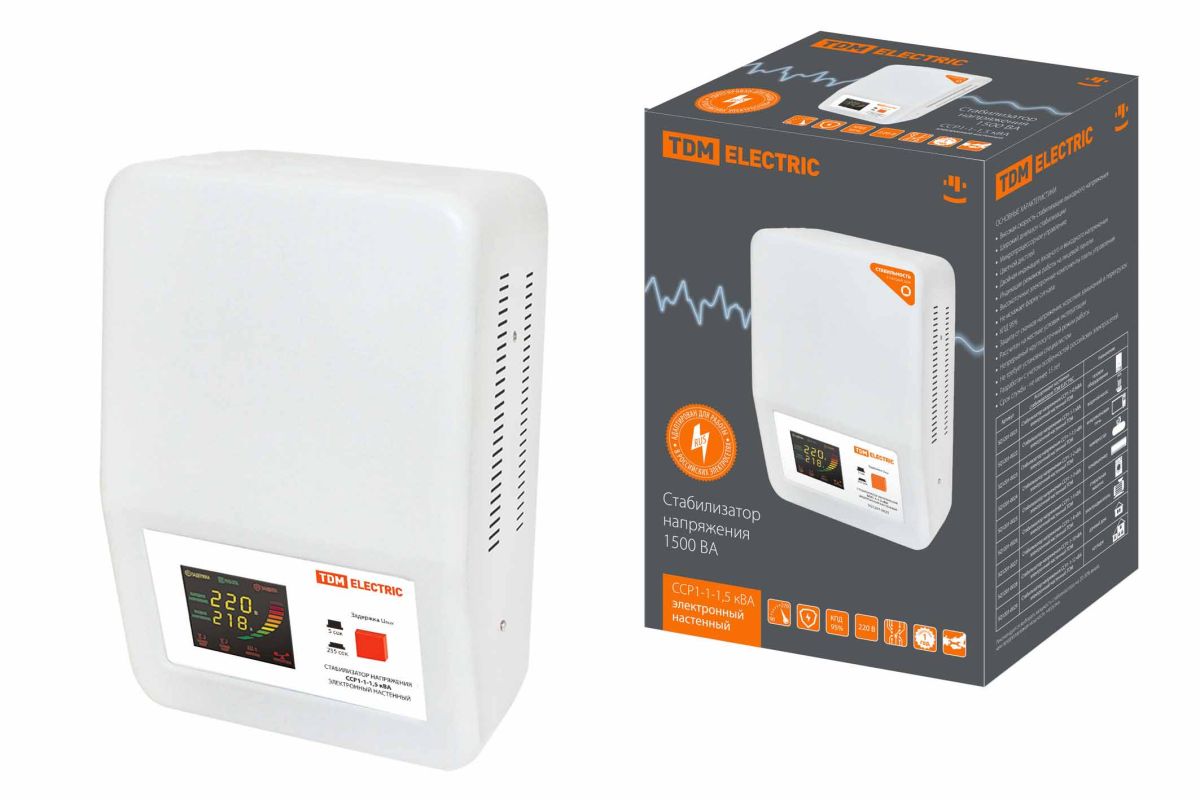 Читать все статьиСтабилизатор напряжения ССР1-1-1,5 кВА электронный настенный TDM