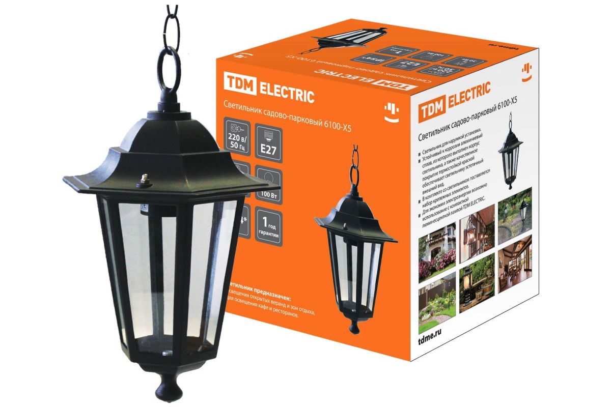 Читать все статьиСветильник 6100-05 садово-парковый шестигранник, 100Вт, подвес, черный TDM
