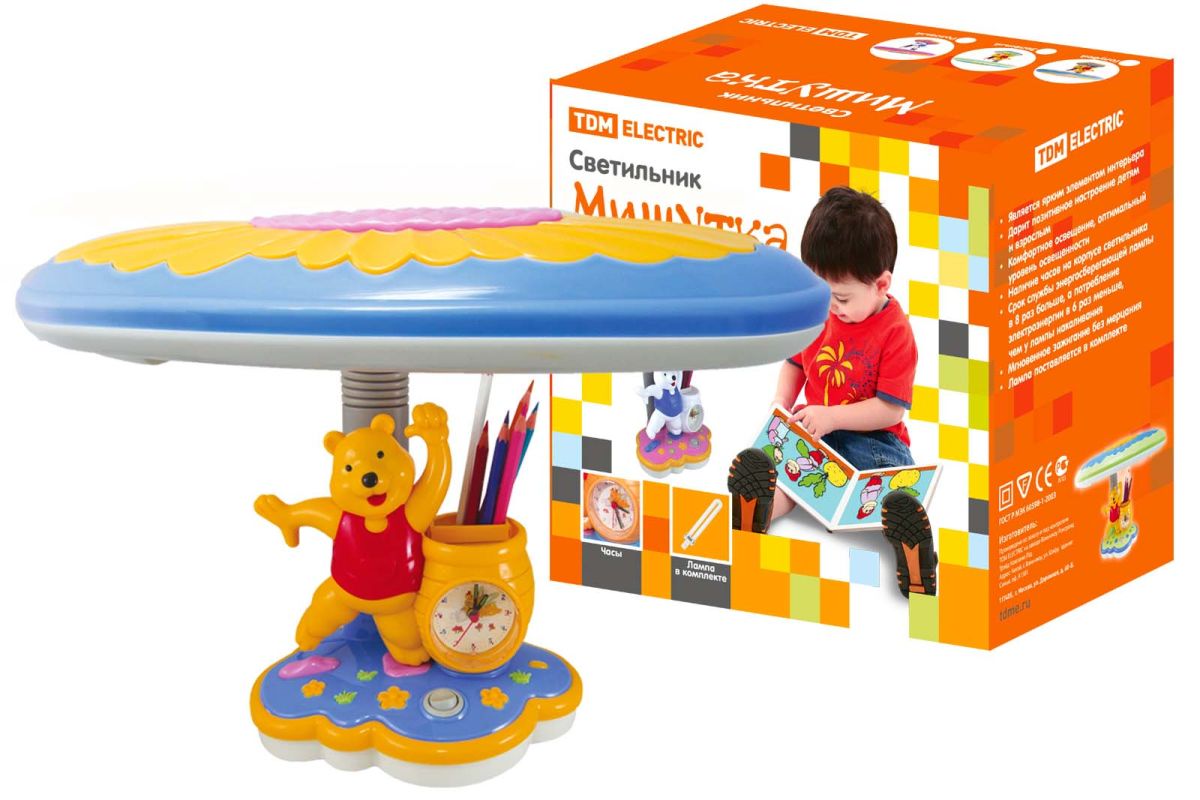Светильник Мишутка настол/часы/подставка 220В, 11Вт, G23, голубойTDM