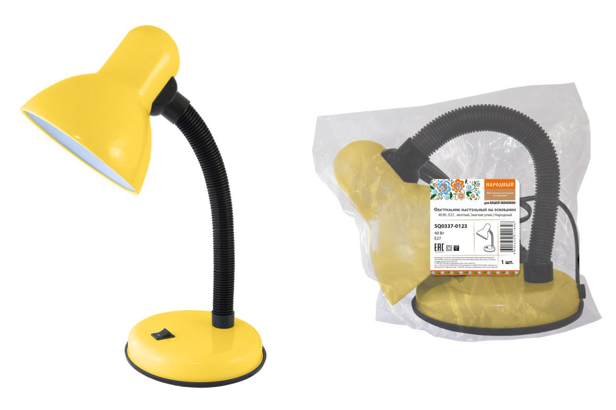 Светильник настольный на основании 40Вт, E27, желтый, (мягкая упак.) Народный