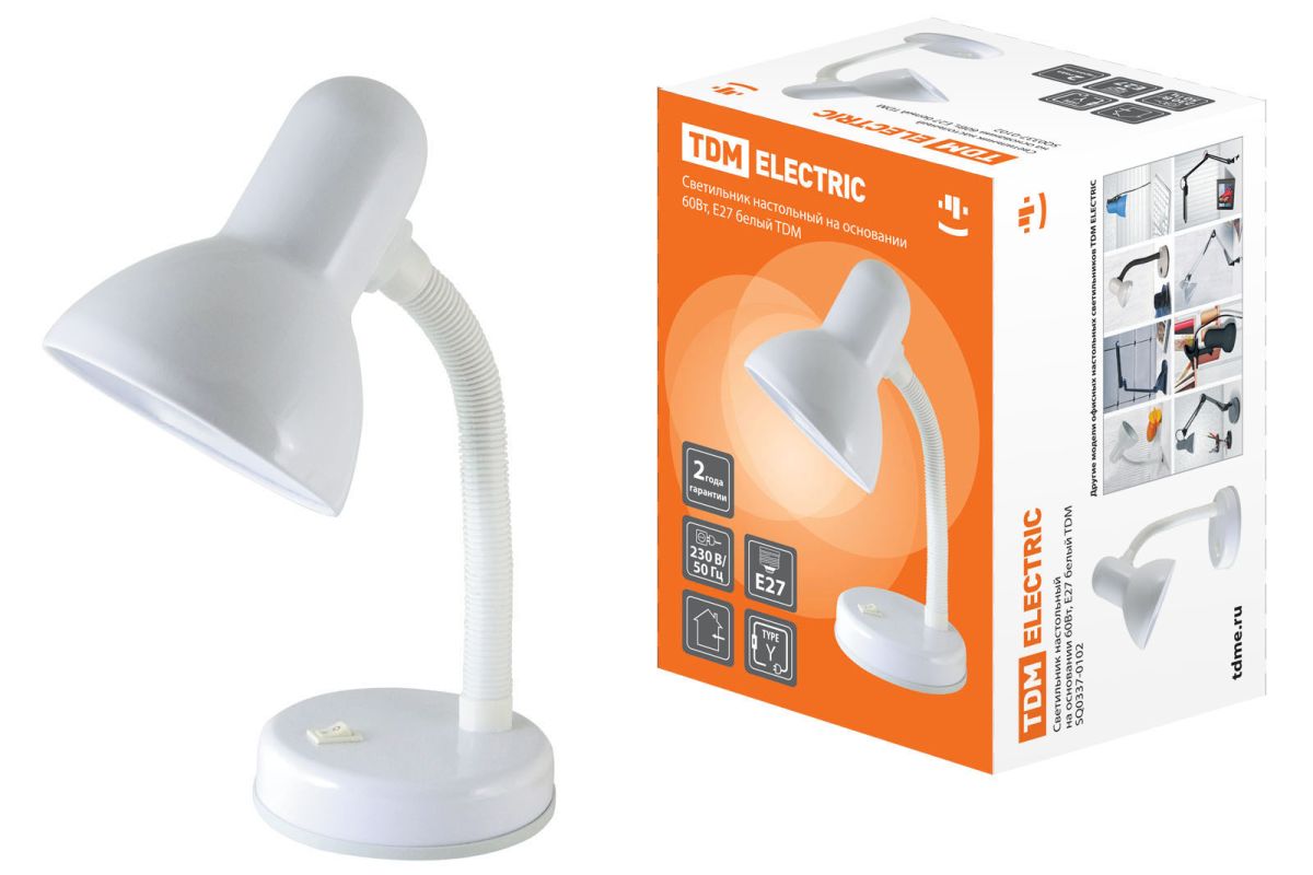 Читать все статьиСветильник настольный на основании 60Вт, E27 белый TDM