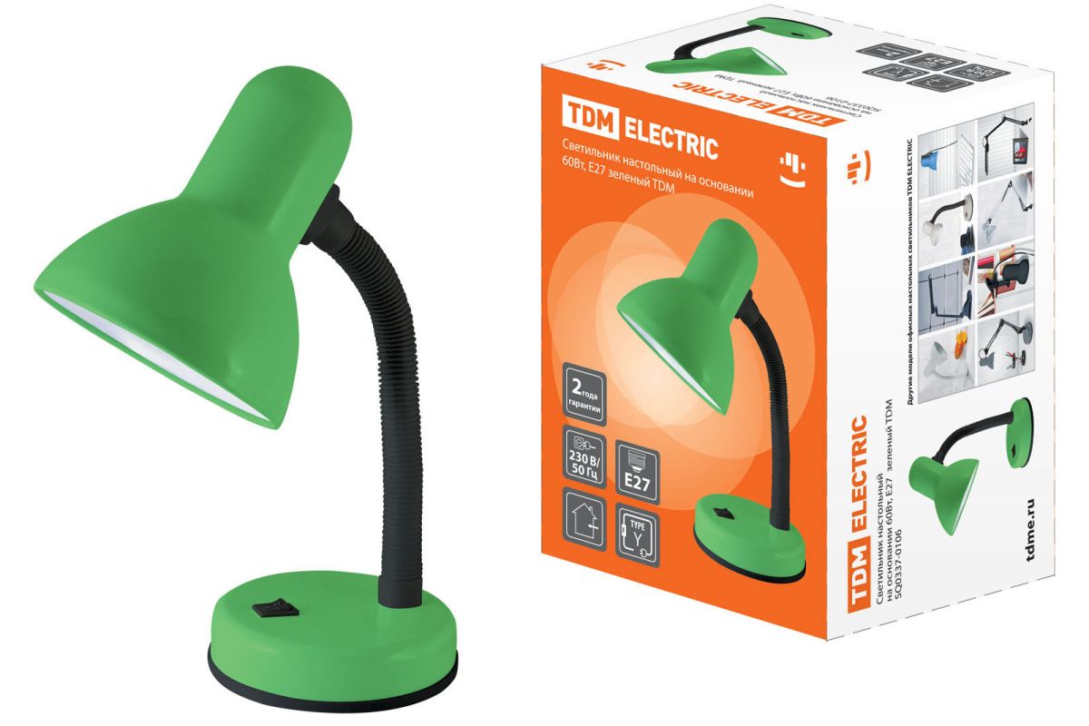 Читать все статьиСветильник настольный на основании 60Вт, E27 зеленый TDM