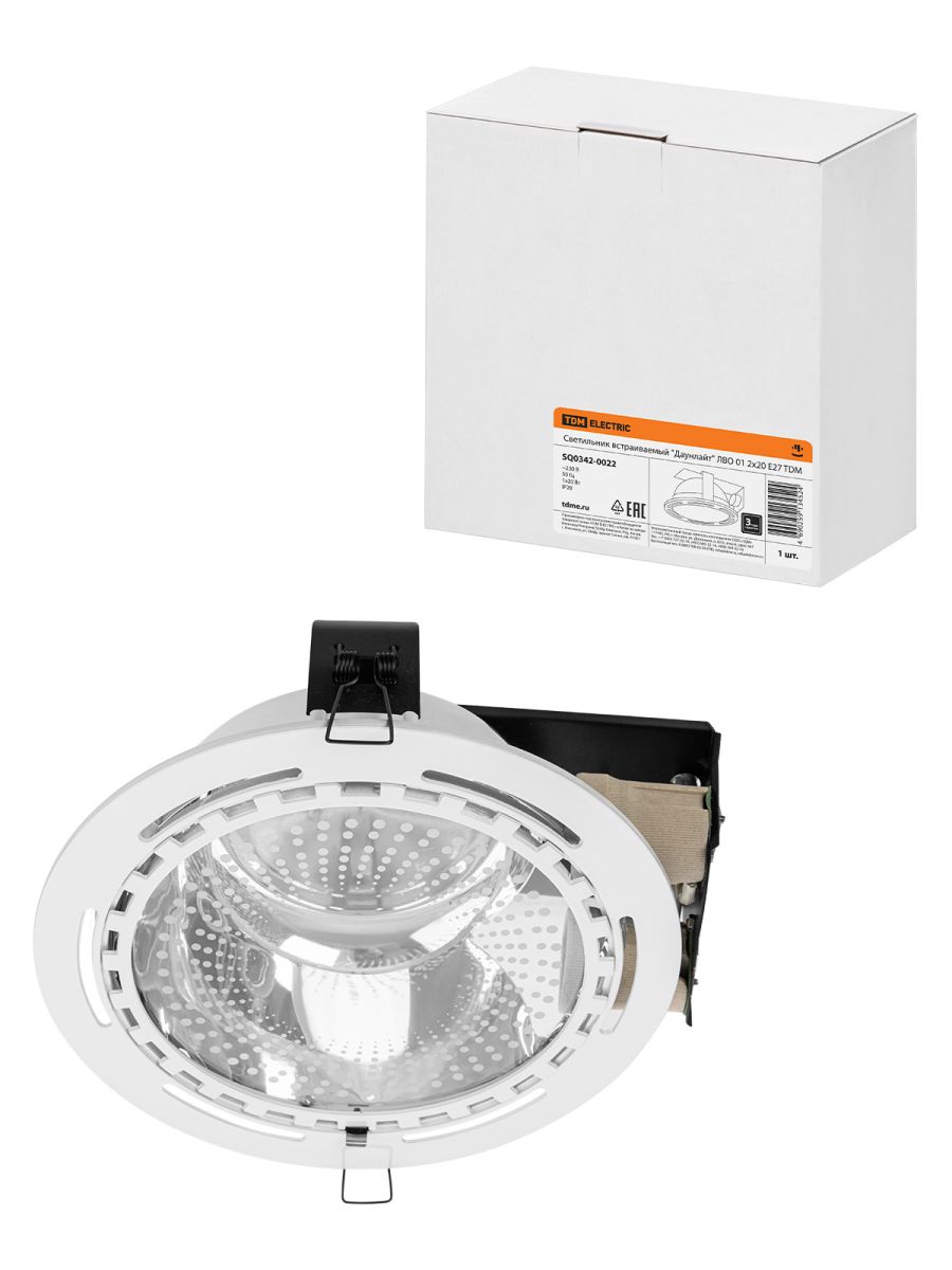 Читать все статьиСветильник встраиваемый «Даунлайт» 01 2х20 E27 TDM