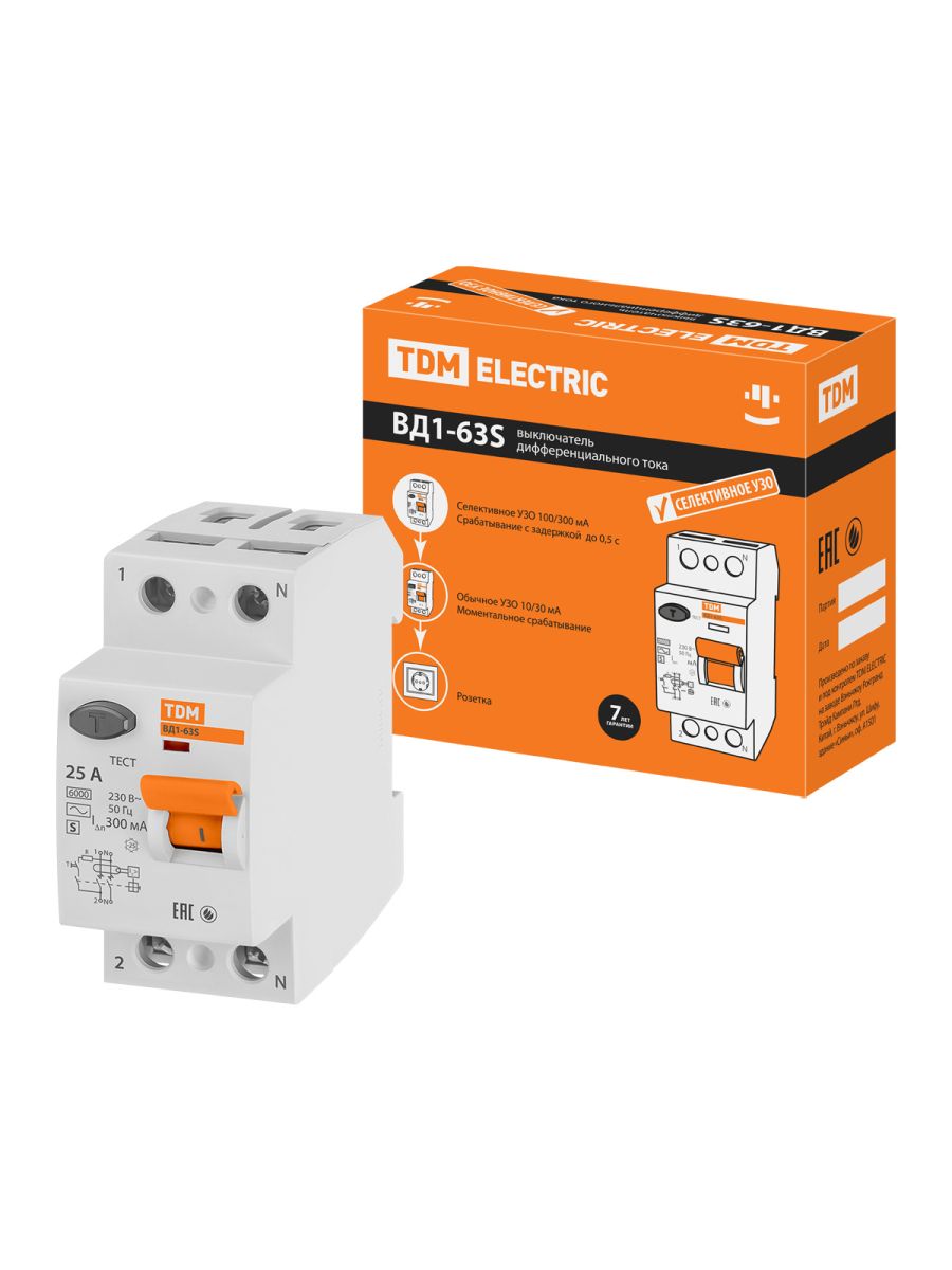 Читать все статьиУстройство защитного отключения ВД1-63S 2Р 25А 300мА TDM