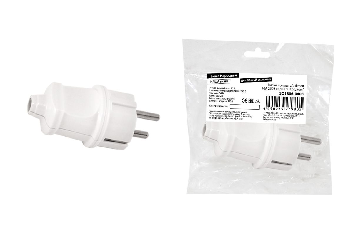 Вилка прямая с/з белая 16А 250В серии «Народная»