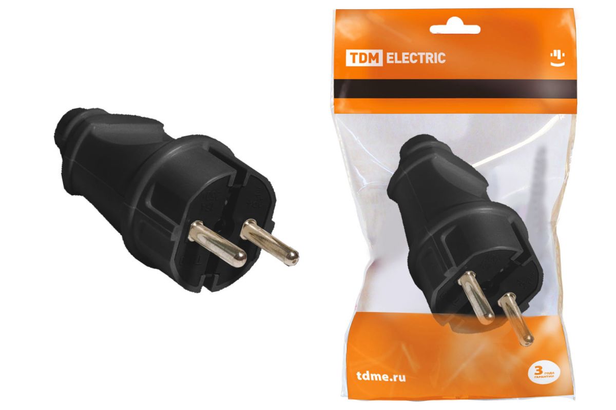 Читать все статьиВилка прямая с/з черная 16А 250В TDM