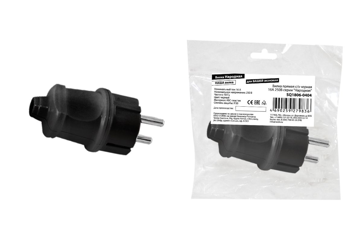 Читать все статьиВилка прямая с/з черная 16А 250В серии «Народная»