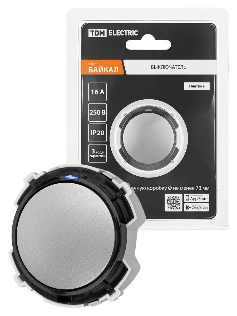 Выключатель 1-кл. 16А 250В кнопочный механизм платина, «Байкал» TDM