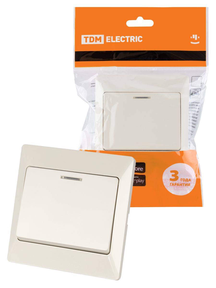 Выключатель 1 кл. с подсветкой 10А сл. кость «Ильмень» TDM