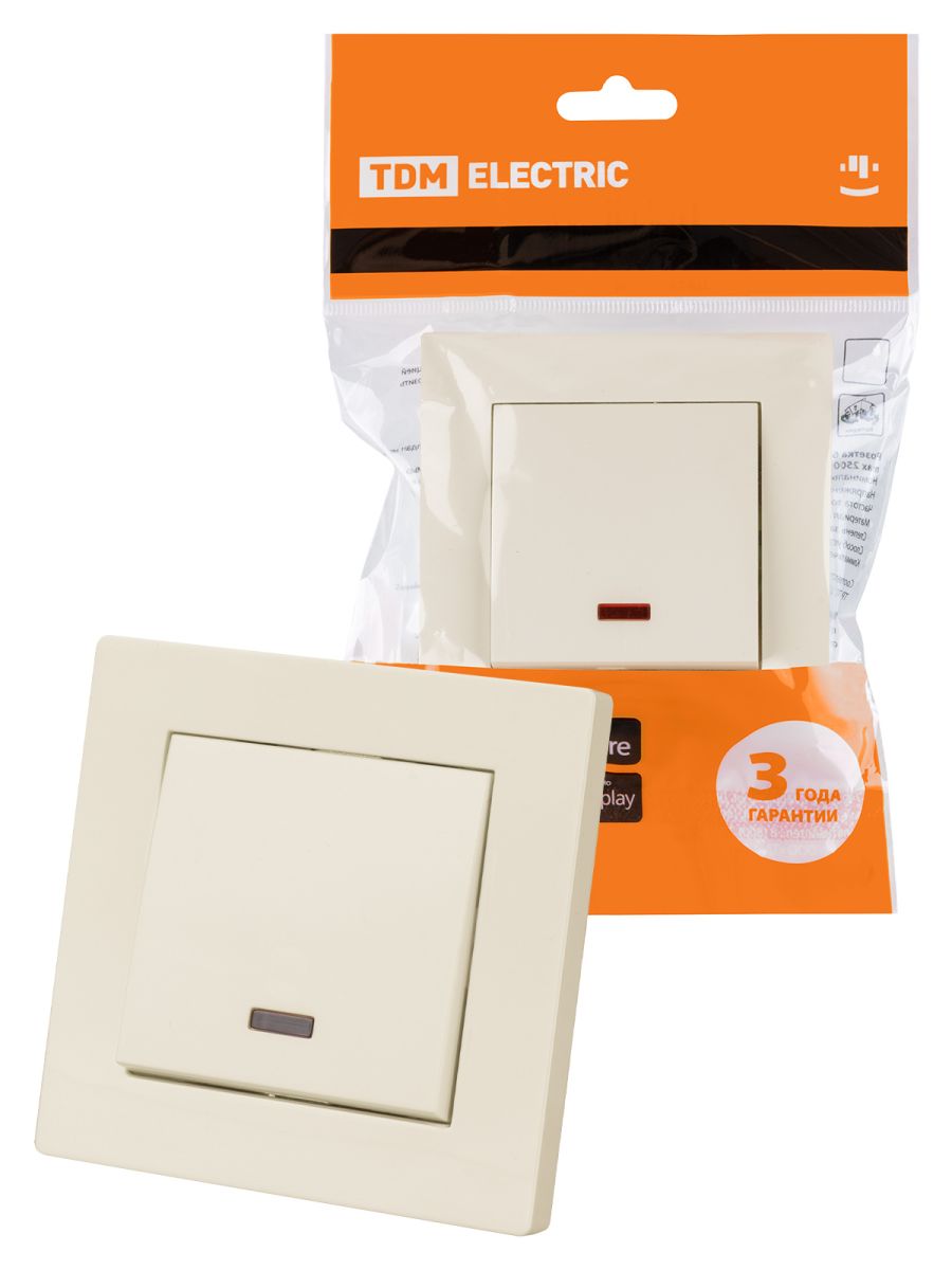 Выключатель 1 кл. с подсветкой 10А сл. кость «Сенеж» TDM