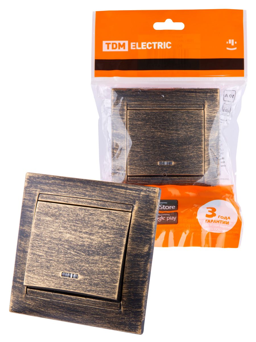 Выключатель 1 кл. с подсветкой 10А старинная бронза «Лама» TDM
