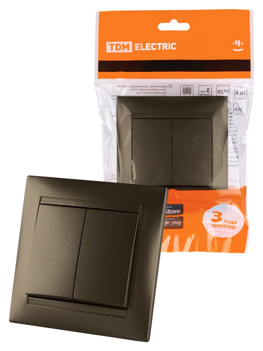 Выключатель 2-х кл. 10А бронза «Лама» TDM