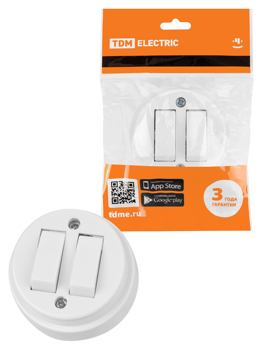 Выключатель 2-кл. открытой установки IP20 10А белый «Ретро» TDM