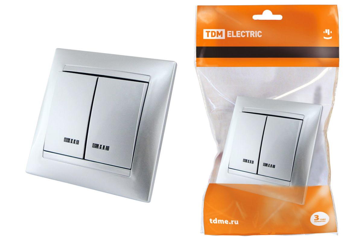 Читать все статьиВыключатель 2 кл. с подсветкой 10А серебр. металлик «Лама» TDM