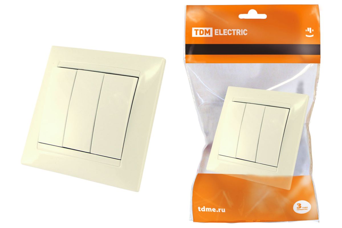 Читать все статьиВыключатель 3-х кл. 10А сл. кость «Лама» TDM