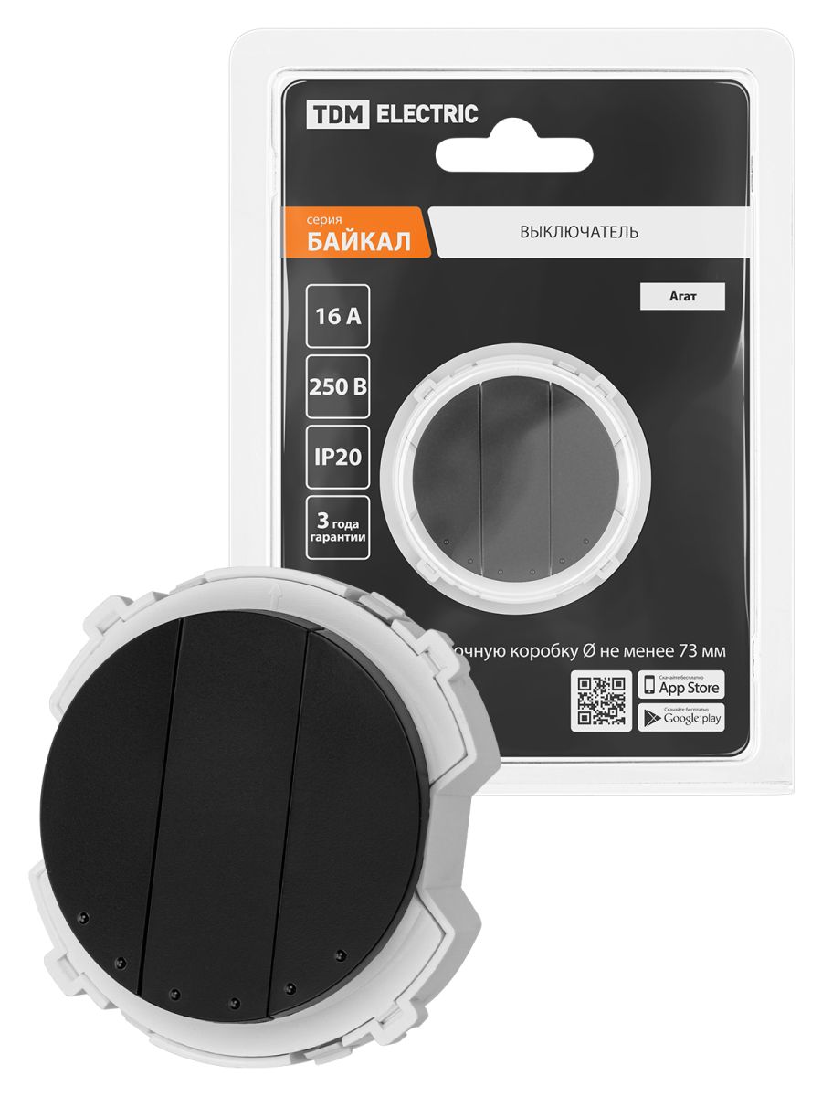 Выключатель 3-кл. 16А 250В проходной агат, «Байкал» TDM