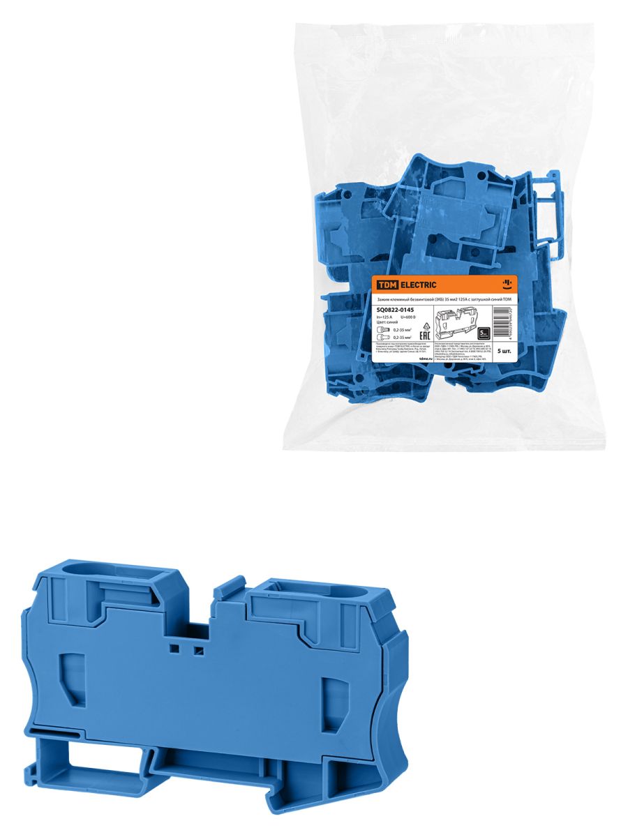 Зажим клеммный безвинтовой (ЗКБ) 35мм2 125А с заглушкой синий TDM