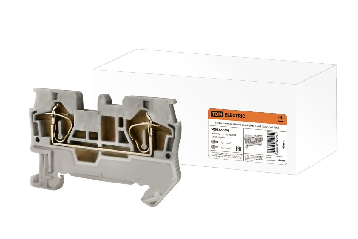 Читать все статьиЗажим клеммный безвинтовой (ЗКБ) 4 мм2 40А серый TDM
