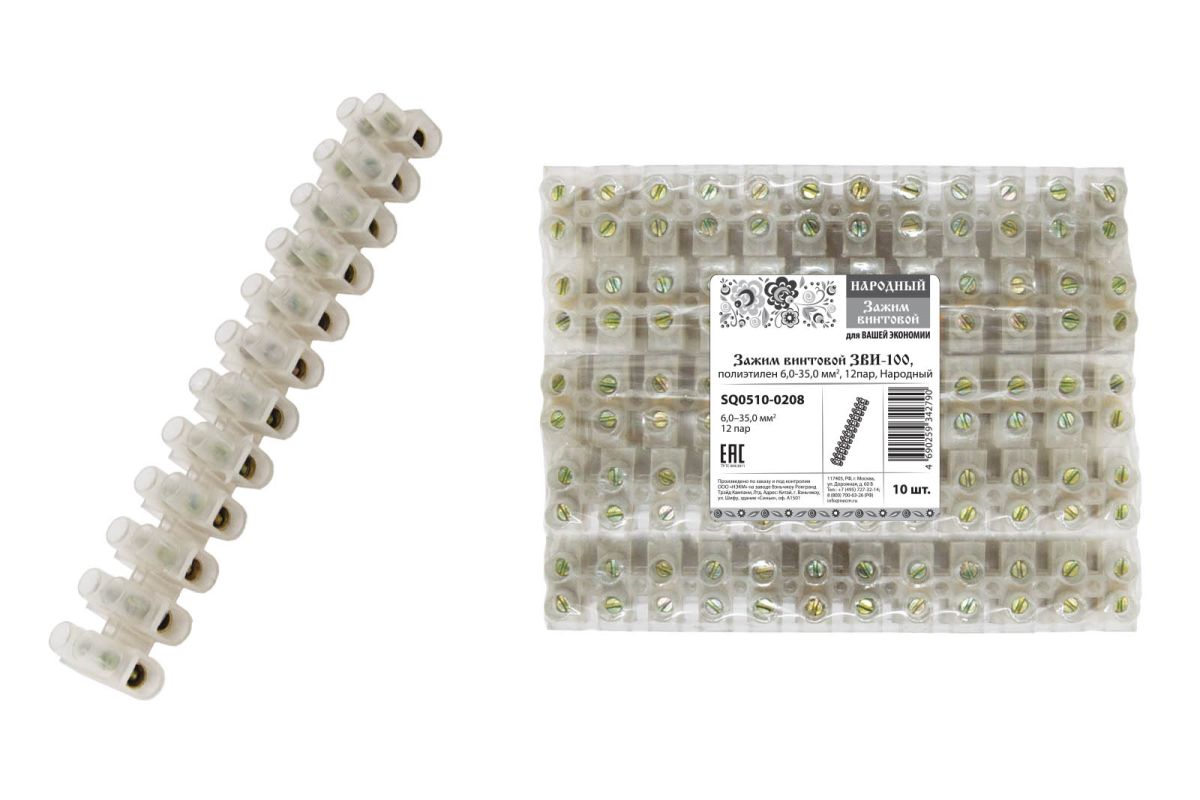 Читать все статьиЗажим винтовой ЗВИ-100, полиэтилен 6,0-35,0 мм2, 12пар, Народный