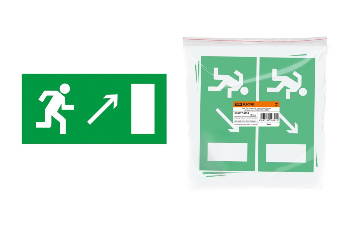 Читать все статьиЗнак «Направление к эвакуационному выходу направо вверх» 200х100мм TDM