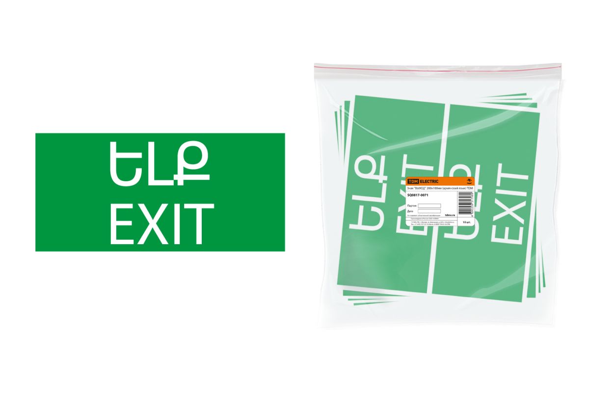 Читать все статьиЗнак «ВЫХОД» 200х100мм (армянский язык) TDM